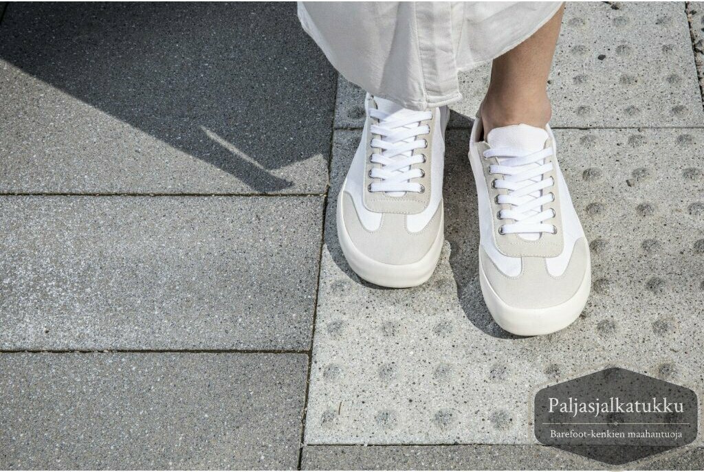 Ensimmäiset paljasjalkakenkäni. Ensimmäistä kertaa ikinä jalat mahtuvat tunkematta kenkään, ihana tunne. Lesti on leveä (wide -malli). Jalka vaatii totuttelua paljasjalkakenkiin, jalkapohjat väsyvät aluksi. Tuntuma on laadukas.