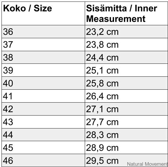 • Pohja: pehmeää luonnonkumia